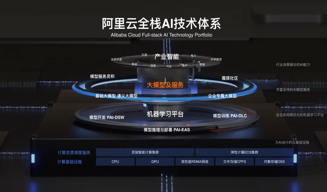 阿里集团董事会主席兼CEO张勇在会上发言,他提到,让计算成为公共服务是阿里云的追求,未来核心要做好两件事情:第一,让算力更普惠,推动自研技术和规模化经营的正循环,持续释放技术红利;第二,让AI更普及,让每家企业的产品都能接入大模型升级改造,并有能力打造自己的专属大模型。