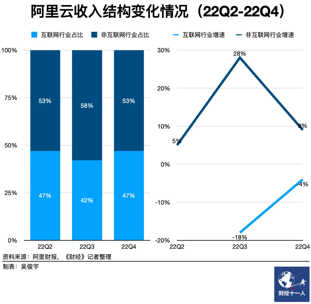 阿里巴巴集团最新财报数据显示,阿里云来自非互联网行业(如金融、电信、教育、汽车、政府等)的收入连续两个季度保持高速增长,互联网行业的收入连续两个季度下滑。阿里云收入结构中,非互联网行业收入连续三个季度超过50%,是阿里云最大的增长动力。事实上,中国云市场内卷之际,大盘的蛋糕还没有完全做大。中国IT支出结构中,云的为代表的软件产品占比仍然相对较低,且远低于数据中心、硬件设备为代表的硬件。Gartner在2021年2月数据的显示,中国IT支出大盘中,包括云计算在内的软件市场占比仅为14%,数据中心、硬件设备为代表的硬件占比则高达40%。阿里云公布的数据则显示,中国IT市场云计算渗透率不到15%,数据中心CPU利用率仅为10%左右。为互联网行业提供价格更加低廉的算力,企业才有可能把云支出投入到深度用云的场景;为非互联网行业提供价格更加低廉的算力,非互联网行业的上云、用云速度才会加快。