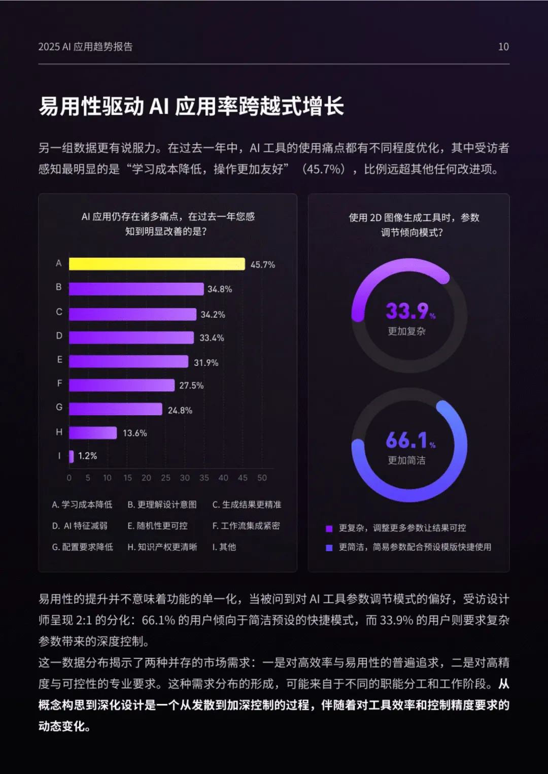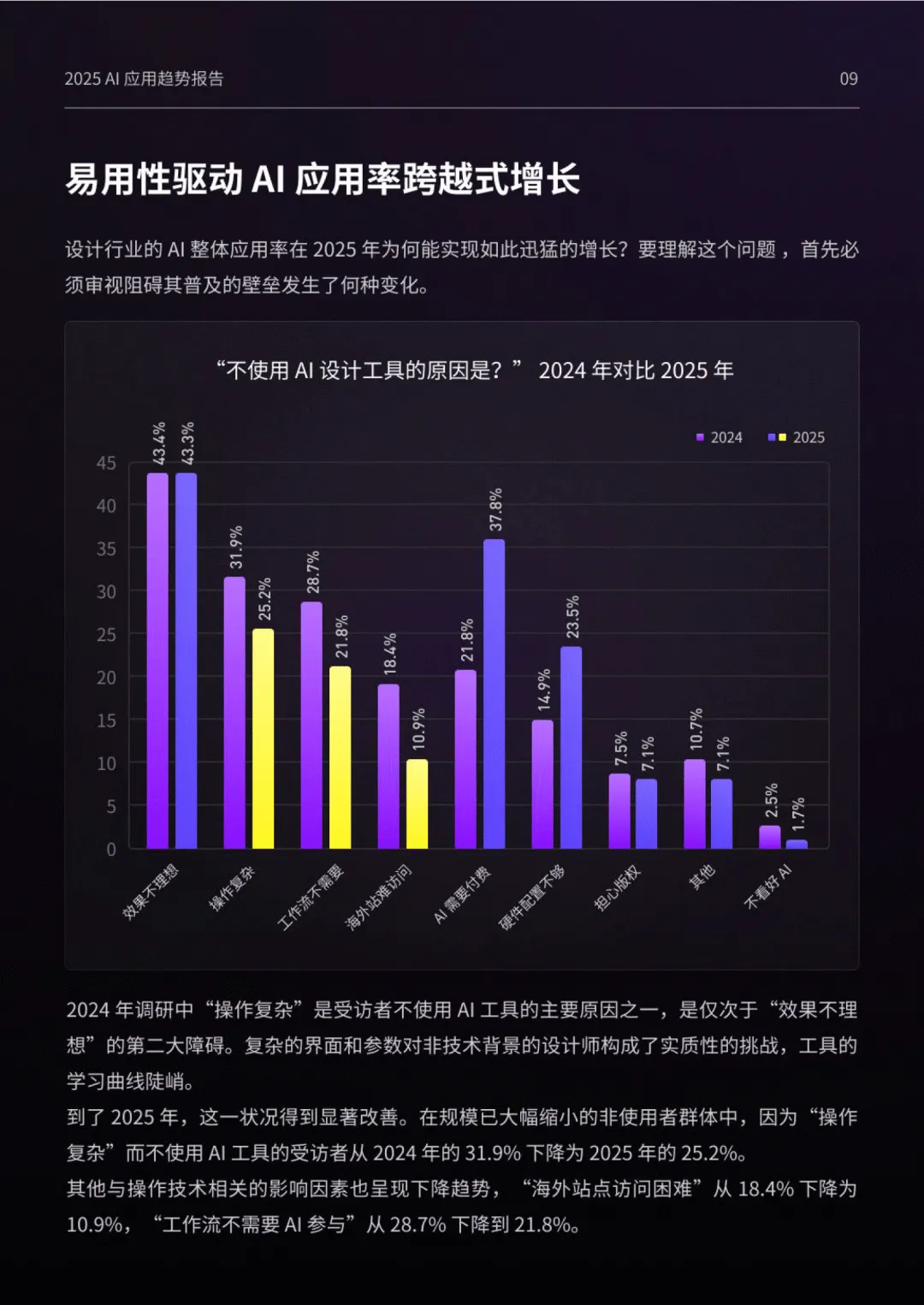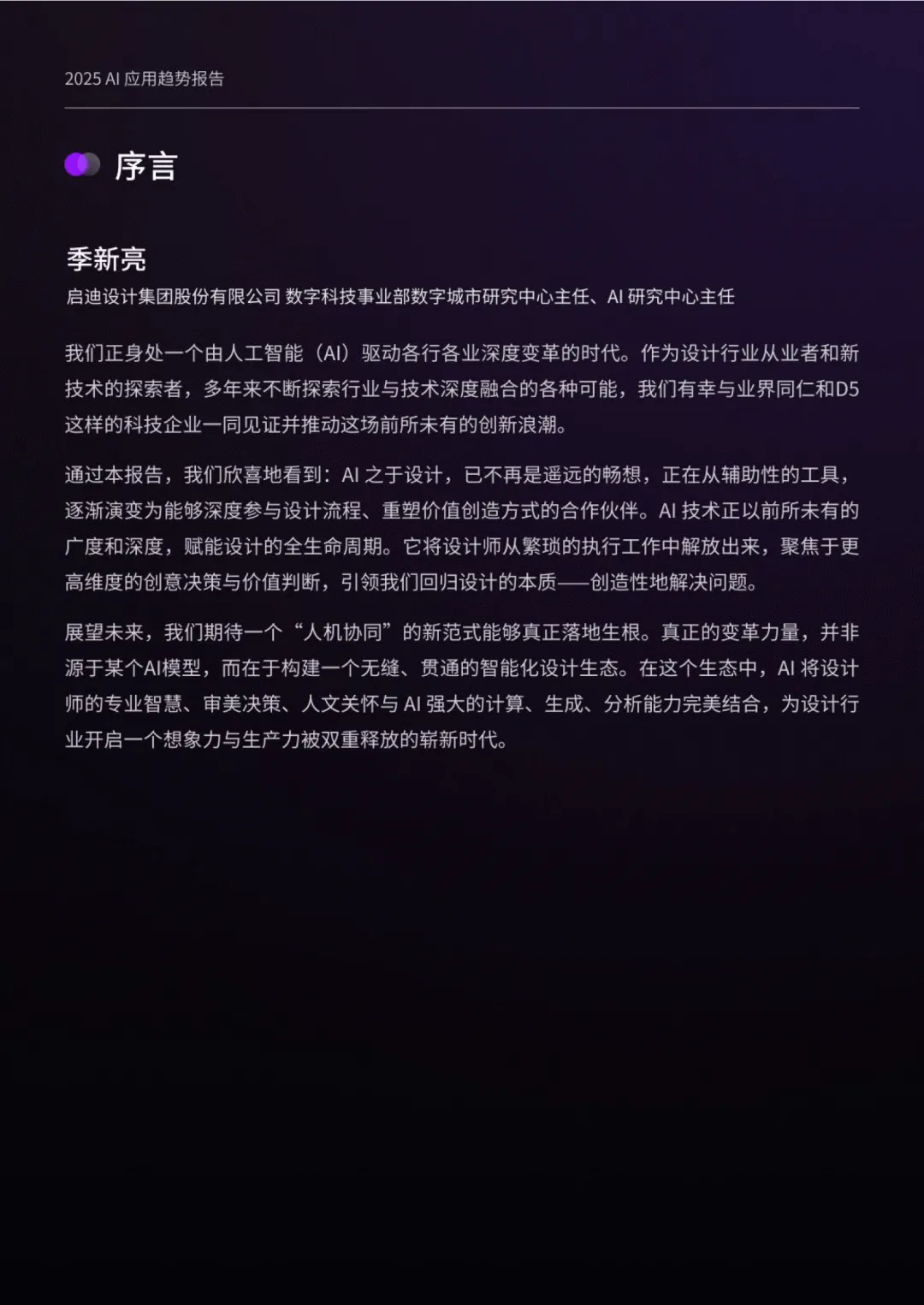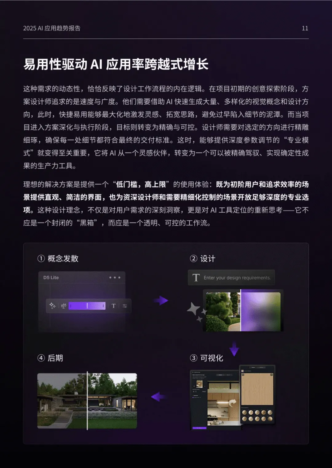报告指出,AI最终将回归设计本质,成为消除创作障碍、释放想象力的催化剂,推动行业向更高效、更具人文关怀的方向发展。