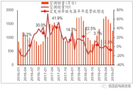 我国空调销售情况与宏发功率继电器业绩增速对比