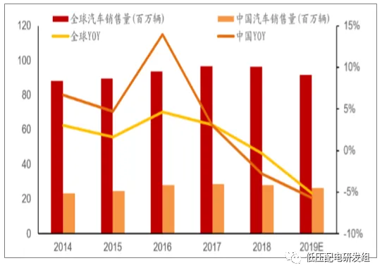 2018年全球汽车销售量开始出现下滑,2019年下滑趋势继续扩大;
