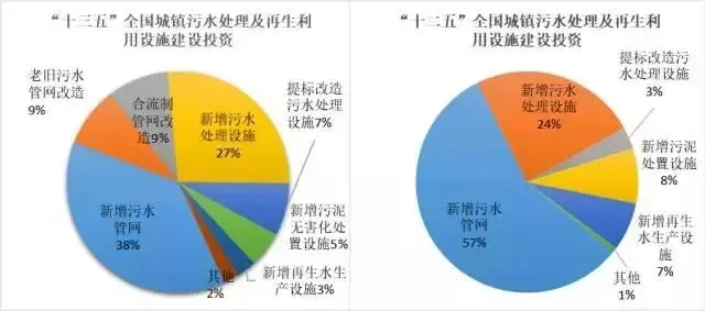 污水处理及再生利用设施建设仍是“十三五”期间的重点投资领域。根据《“十三五”全国城镇污水处理及再生利用设施建设规划》,“十三五”期间将投入5644亿元用于城镇污水处理及再生利用设施建设,相比“十二五”4298亿元的规划投资额增加了31.3%,平均每年投资1129亿元。