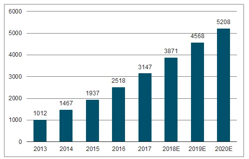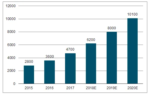 随着世界范围内信息技术的高速发展和互联网的广泛覆盖,全球数据呈现爆发增长、海量聚集的特点。据统计,全球数据产生量早在2011年就已达到1.8ZB(1.8万亿GB),且数据总量正在以年均50%的速度增长,预计到2020年,全球数据总量将达到40ZB,而彼时我国数据量将达到8.6ZB,占全球数据量的21%,大数据产业公司的重要地位日益凸显。2017年中国大数据产业规模达到4700亿元,同比增长30.56%;预计2020年产业规模将达10100亿元,对应2017-2020年的平均复合增长率约为29%。