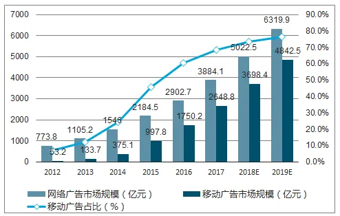 广告主对营销有着天然的精准性要求,而大数据产业的发展和数据的不断积累使数据驱动下的互联网营销成为可能。2016年度中国网络广告市场规模达到2902.7亿元,同比增长32.9%,其中移动广告市场规模达到1750.2亿元,增长率达到75.4%,远高于网络广告市场增速,占比达到60.3%,预计到2019年中国移动广告市场规模接近5000亿元,占比接近80%。移动互联网广告快速增长的原因包括程序化购买、移动场景营销、社交圈层营销和泛娱乐营销等多细分领域的长足发展。