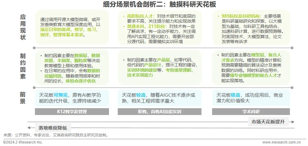 从K12到高/职教实训到学术科研,应用前景与落地难度同步提升