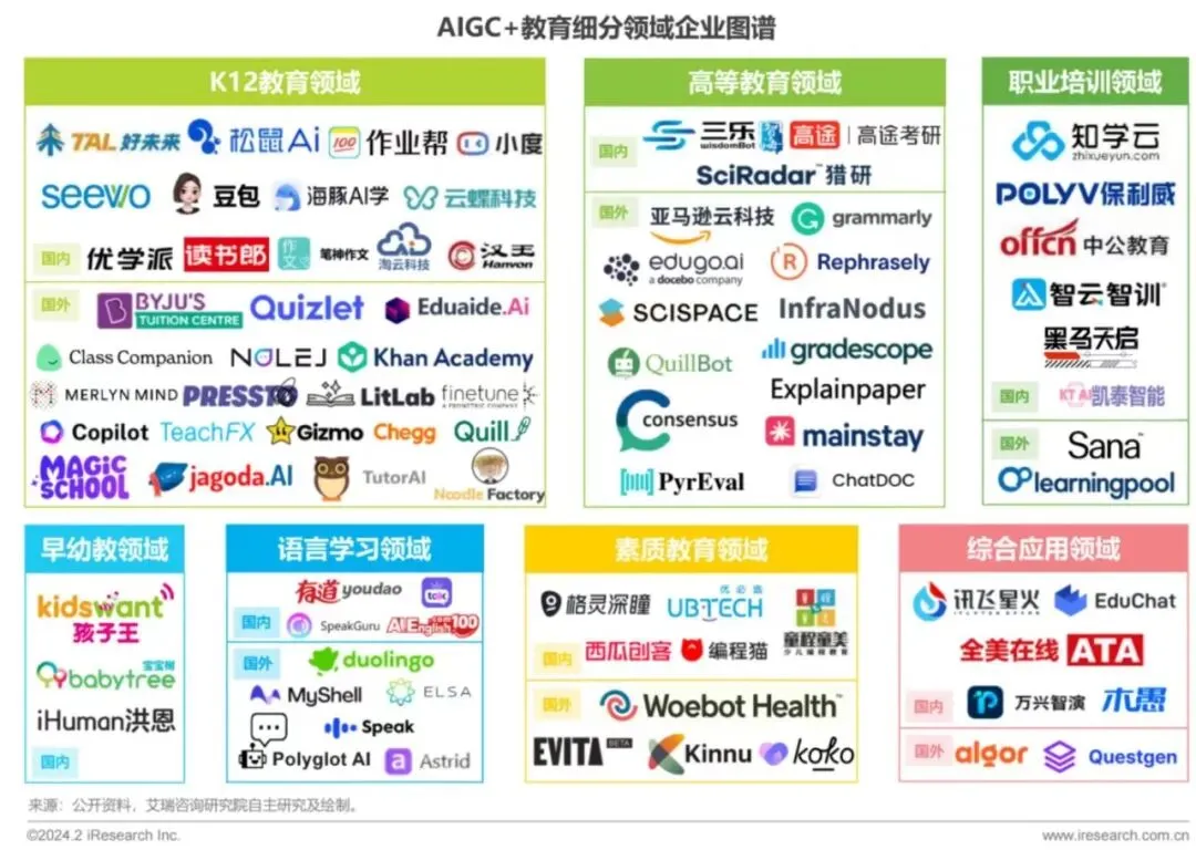 不同学段的AIGC技术应用有着不同的侧重点。在K12阶段,侧重技术对日常教学练评测、管理功能的升级迭代,且随着出生人数的持续下降,天花板总体可预见。其制约因素主要在数据层,数据质量、丰富度、颗粒度等决定教育模型的上限和使用体验。同时日常的应用中,会有数据的反哺回流,随着使用频率和时间的拉长,体验会逐步优化;在高/职教实训阶段,侧重AIGC工程师的培养,高职院校、普本、211院校等人才有着阶梯式的差异化诉求。其制约因素主要在产品层,如低代码平台的设计、实训环境的建设等,总体天花板较高,随着AIGC技术逐步成熟,相关工程师需求量较大;在学术科研阶段,除基本的文献阅读等工作减负外,更侧重AIGC支持下的基础研究及探索。通常以大模型为基础,与科研工具包结合,以加速科研计算和数据预测等。制约因素主要在于更加精细垂直的模型,以及懂专业又懂大模型的复合人才,但科研攻关一旦成功落地,商业潜力和价值极大。