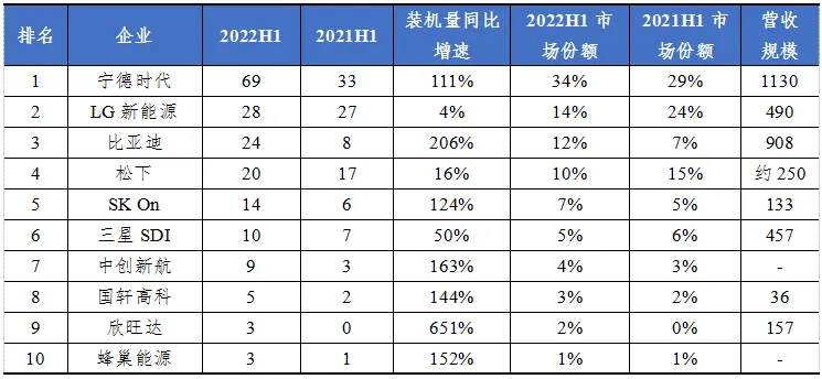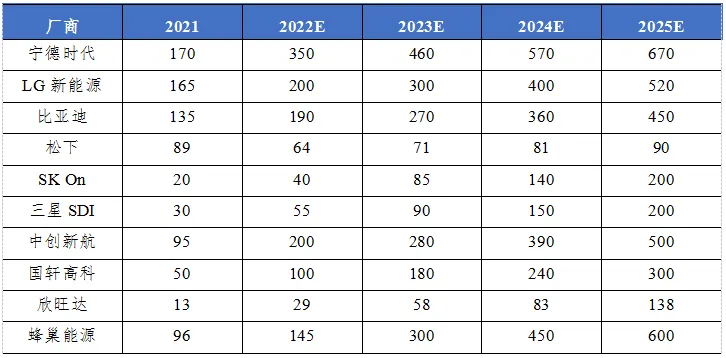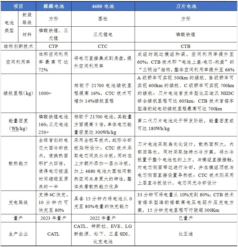 在刚刚过去的2022年上半年,全球动力电池装机量同比大涨了76%至202GWh,从中我们看到一方面新能源汽车进入发展快车道,对动力电池的需求极大;另一方也看到全球动力电池厂商不断投资建厂扩大产能,头部企业快速发展,牢牢把握住市场份额。其中,中国动力电池厂商以绝对优势霸榜前十,国内厂商占据56%的份额,日韩厂商份额在36%左右,前十玩家合计占据92%的市场,行业集中度高度集中,强者恒强。图表1:2022年上半年全球动力电池装机量TOP10(单位:GWh,%,亿元)具体来看,宁德时代同比增长5个百分点,以34%的市场份额霸榜第一,领先第二名超过20个百分点,从份额上看,宁德时代对得起“宁王”这一市场称号了,34%的市场份额概念就是全球每三台电动汽车就有一台搭配了宁德时代的电池,恐怖如斯。LG新能源较去年同期仅增加1GWh装机量,市场份额出现急剧下降,下降了10个百分点;同时,松下掉出前三,市场份额下降5个百分点至10%;比亚迪上升一位进入前三,市场份额增长5个百分点,至此前三中国厂商占据两个名额。总体来看,除宁德时代、比亚迪之外的四家中国厂商从装机规模来看与日韩厂商差距还是比较大,但可以看到差距正逐步缩小,值得一提的是中创新航较去年同期增加了6GWh装机量,距三星SDI仅一步之遥。从营收规模来看,宁德时代也是遥遥领先其他同行,得益于动力电池市场井喷式发展,宁德时代已经连续五年拿下世界第一排行。当下,我国新能源汽车产业已迈入规模化快速发展新阶段,巨大的市场预期下,全球动力电池厂商加码布局,动力电池企业对于产能的扩张近乎饥渴。根据公开信息不完全统计,国内主流厂商至2025年产能有望超过1TWh,其中CATL规划产能超670GWh,比亚迪所规划的产能约450GWh,蜂巢能源产能规划表现激进,两年时间,产能规划翻五倍,从计划2025年规划120GWh的动力电池产能到规划600GWh产能,产能规划仅次于宁德时代。图表2:全球主流动力电池厂商产能规划(单位:GWh)资料来源:各公司公告 OFweek产业研究中心测算据报道,LG新能源计划今年投资约7万亿韩元,用于提升该公司在全球的电动汽车电池产能。根据计划,LG新能源全球产能将在今年年底提高至200GWh,到2025年达到520GWh。今年主要的投资项目包括通用汽车的合资工厂,美国密歇根与中国等生产基地的产能扩大和研发投资。7月,松下电池表示将斥资40亿美元在美国堪萨斯州德索托建造一座电动汽车动力电池工厂,预计将生产4680圆柱电池,满足特斯拉及其他整车配套需求。此外,三星SDI电池扩张产能支出2022年预计接近3万亿韩元(约合156亿人民币),同比增长近50%。为实现电池产能扩张,三星SDI正在进行匈牙利Goed工厂的扩建,并计划投资1.7万亿韩元(约合88.4亿人民币)在马来西亚建厂。此外,今年5月三星SDI也宣布与汽车厂商Stellantis合作,在美国印第安纳州建立第一家美国电池厂。结构创新百家争鸣,4680、麒麟电池、刀片电源各领风骚