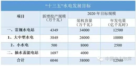 为积极发展水电,规划制定了“十三五”时期全国水电发展的目标:新开工常规水电和抽水蓄能电站各6000万千瓦左右,新增投产水电6000万千瓦,2020年水电总装机容量达到3.8亿千瓦,年发电量1.25万亿千瓦时,在非化石能源消费中的比重保持在50%以上;同时,“西电东送”能力不断扩大,2020年水电送电规模达到1亿千瓦。
