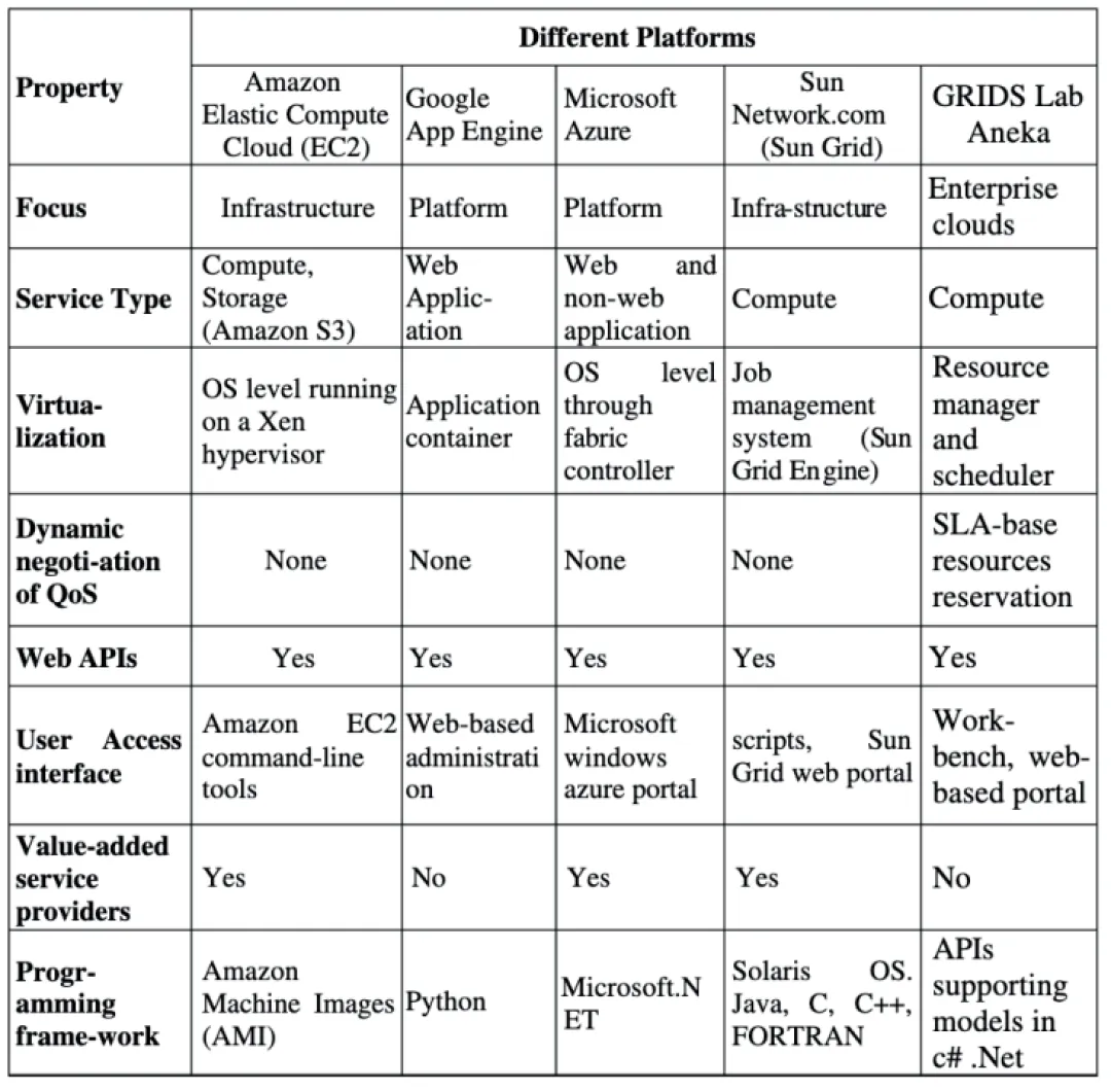 图|Comparison of Some Cloud Computing Platforms来源:《Cloud Computing: Analysis of Various Platforms》