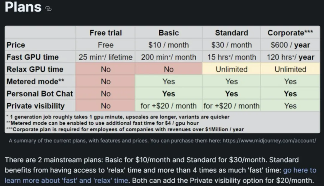 (2) AI作画:以Midjourney为例,提供工具服务并进行收费: