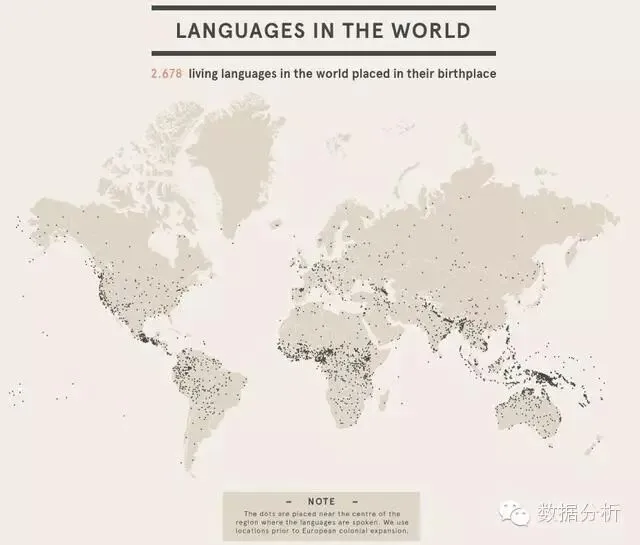 这个由DensityDesign设计的互动是个令人印象深刻的成果,它将世界上众多(或者说,我们大多数人)的语言用非语言的方法表现出来。一共有2678种。