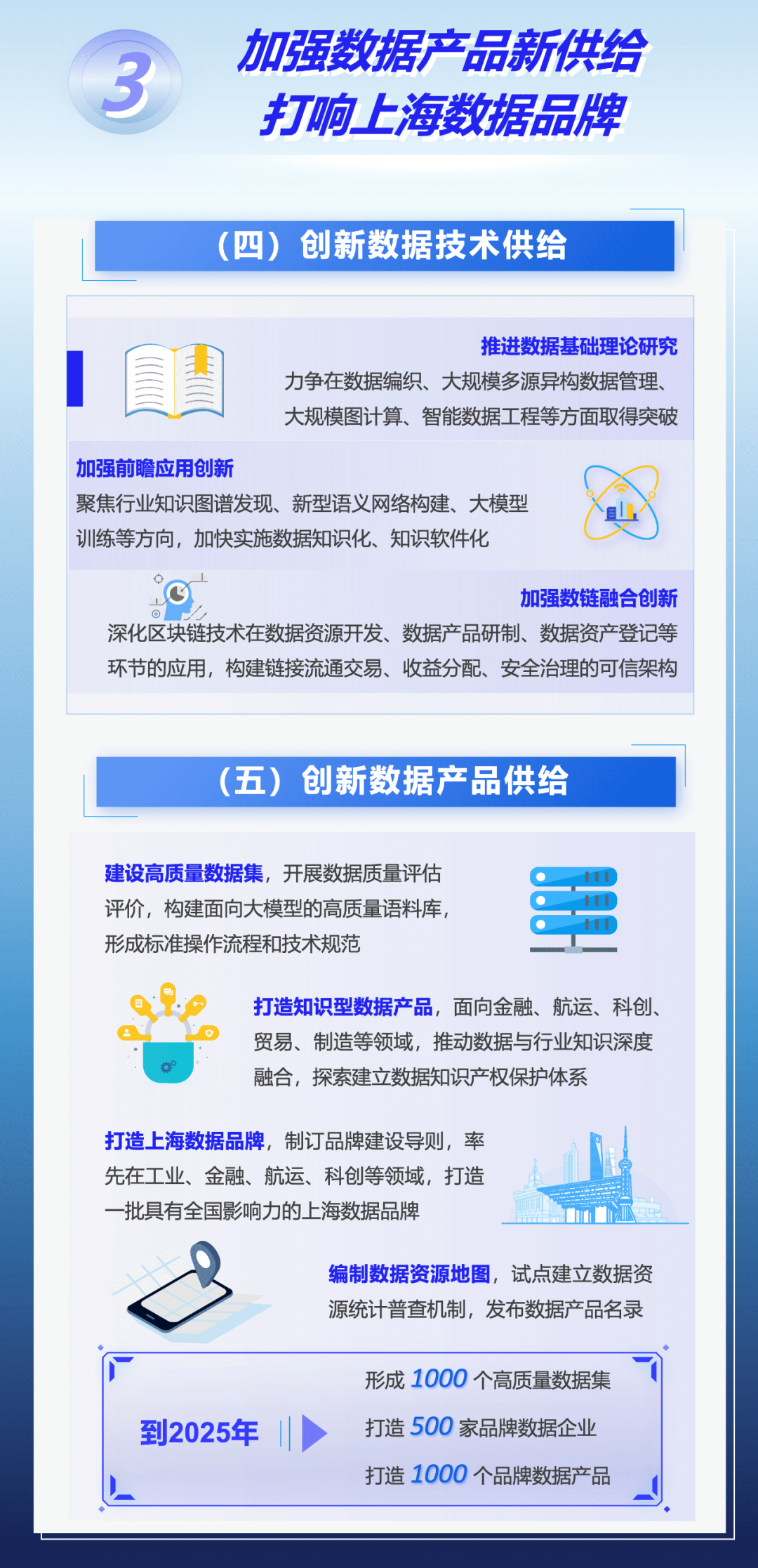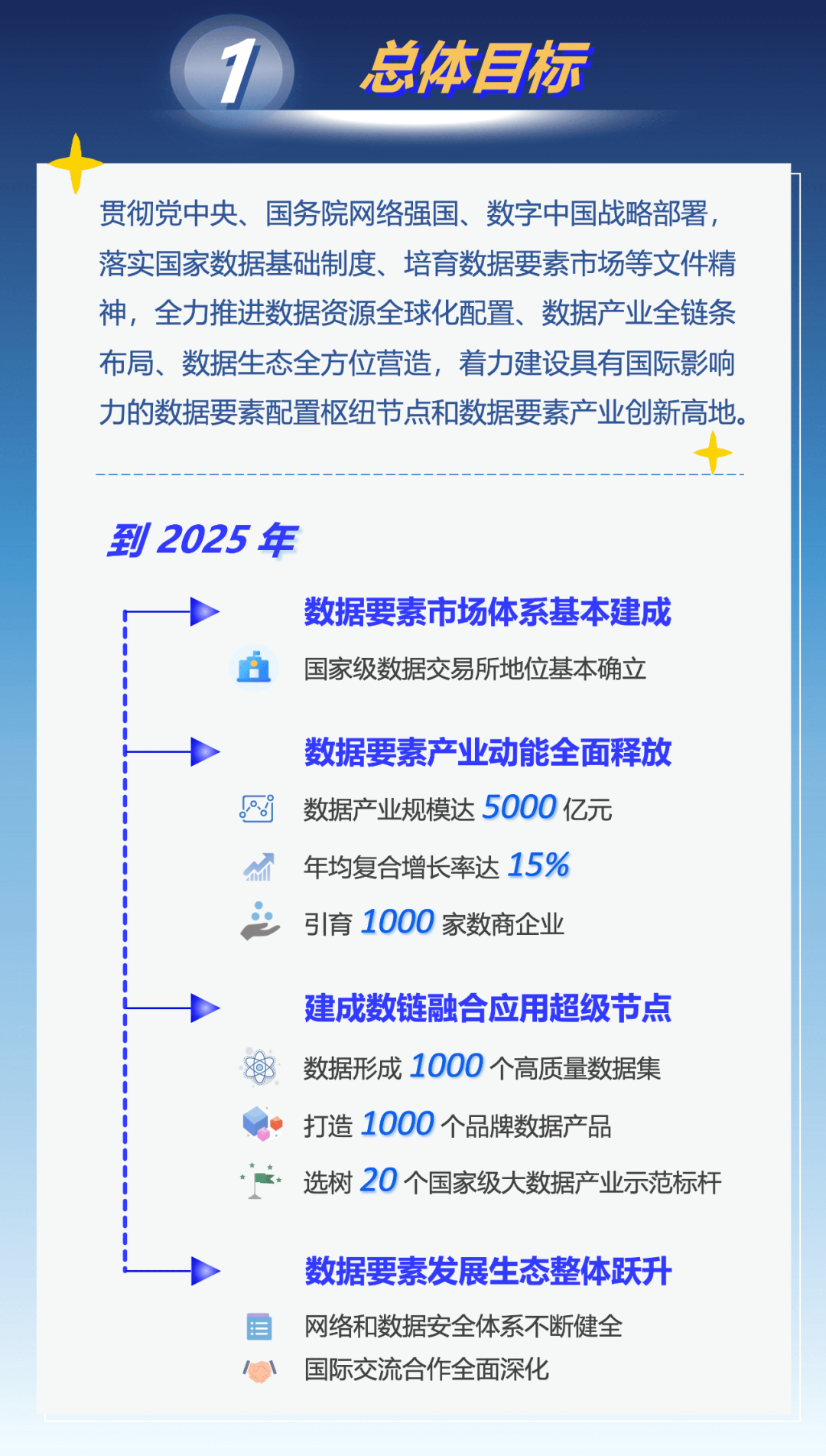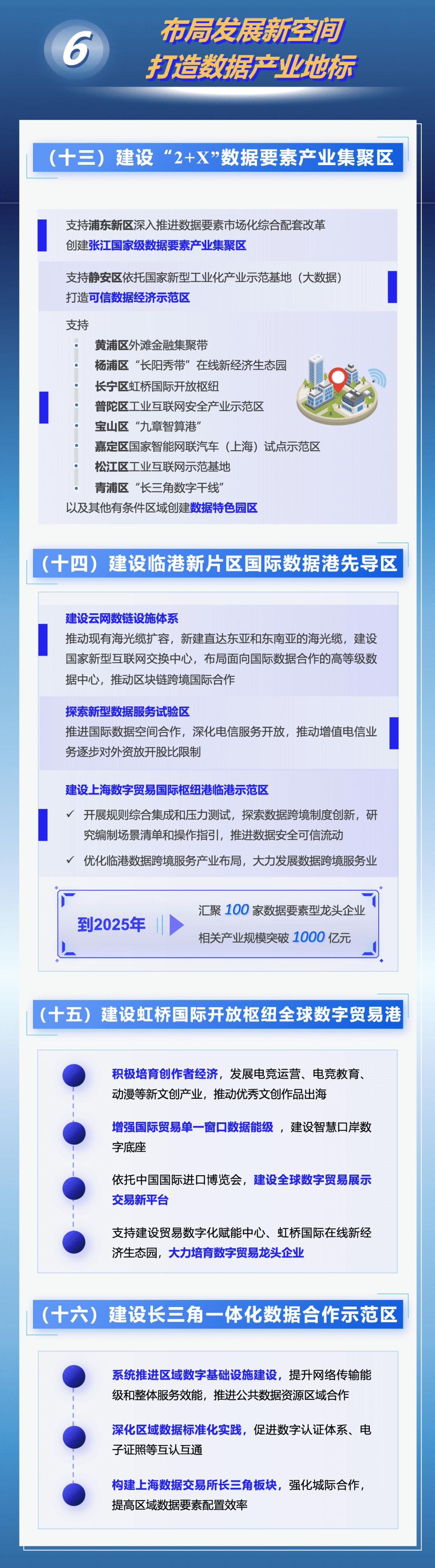 市政府办公厅近日印发《立足数字经济新赛道推动数据要素产业创新发展行动方案(2023-2025年)》,进一步推动数据要素产业发展、促进数字红利释放、提升数字经济质量。《行动方案》明确到2025年,数据要素市场体系基本建成,国家级数据交易所地位基本确立;数据要素产业动能全面释放,数据产业规模达5000亿元,年均复合增长率达15%,引育1000家数商企业;建成数链融合应用超级节点,形成1000个高质量数据集,打造1000个品牌数据产品,选树20个国家级大数据产业示范标杆;数据要素发展生态整体跃升,网络和数据安全体系不断健全,国际交流合作全面深化。具体图解如下↓