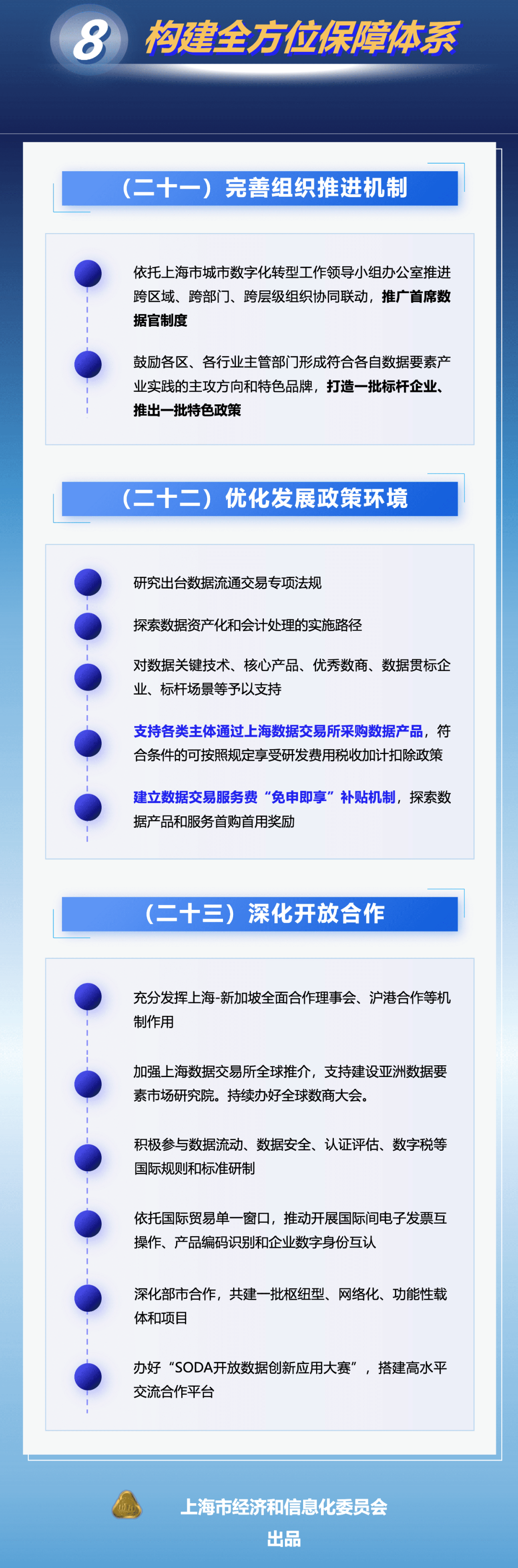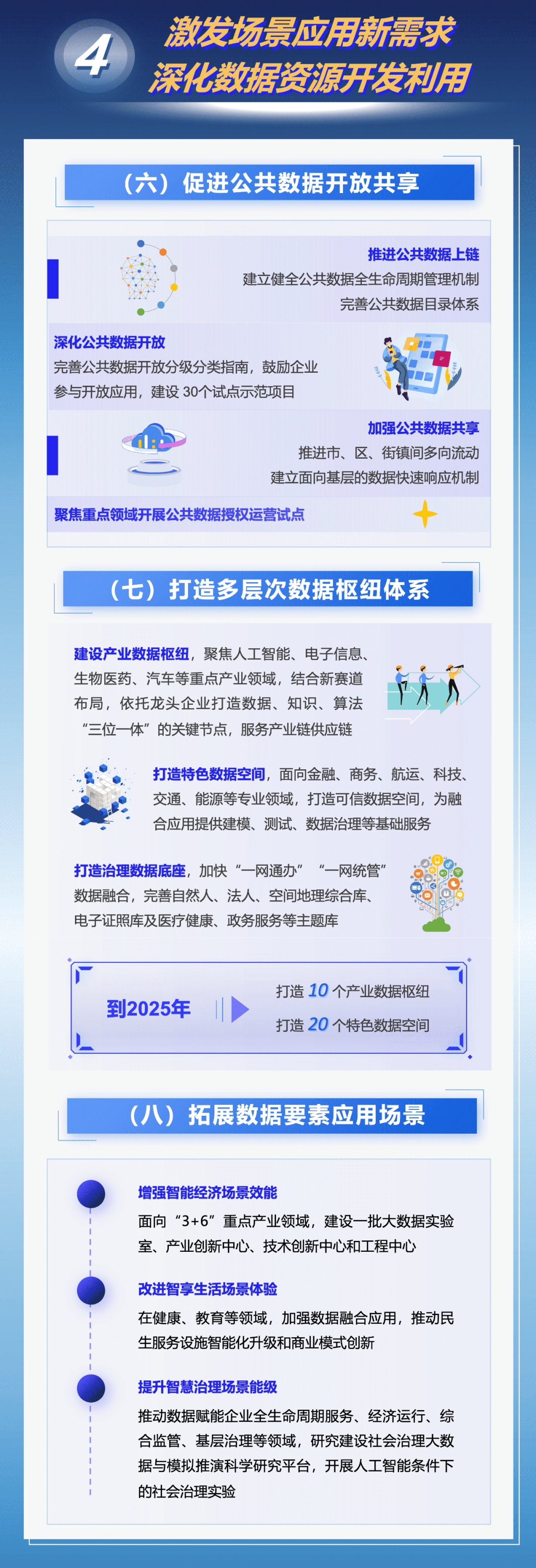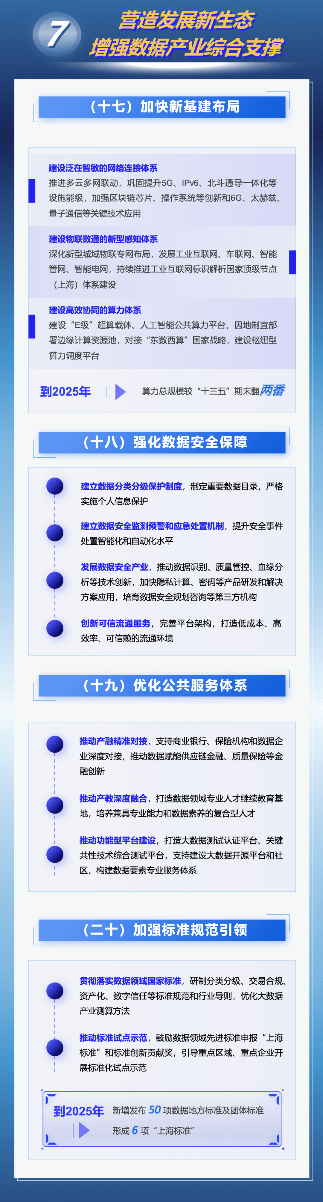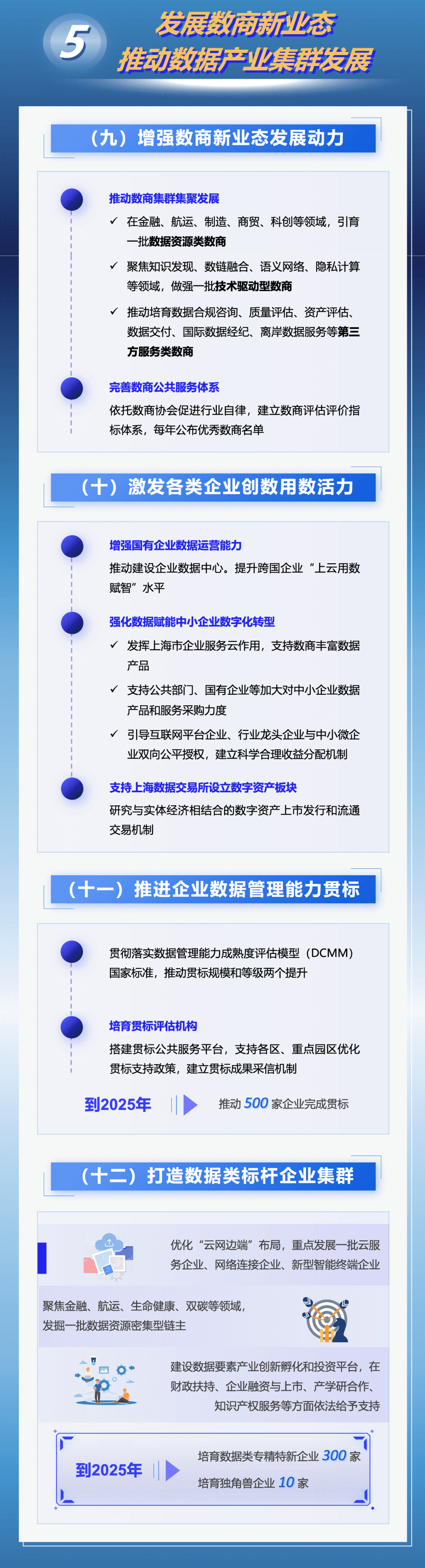 市政府办公厅近日印发《立足数字经济新赛道推动数据要素产业创新发展行动方案(2023-2025年)》,进一步推动数据要素产业发展、促进数字红利释放、提升数字经济质量。《行动方案》明确到2025年,数据要素市场体系基本建成,国家级数据交易所地位基本确立;数据要素产业动能全面释放,数据产业规模达5000亿元,年均复合增长率达15%,引育1000家数商企业;建成数链融合应用超级节点,形成1000个高质量数据集,打造1000个品牌数据产品,选树20个国家级大数据产业示范标杆;数据要素发展生态整体跃升,网络和数据安全体系不断健全,国际交流合作全面深化。具体图解如下↓