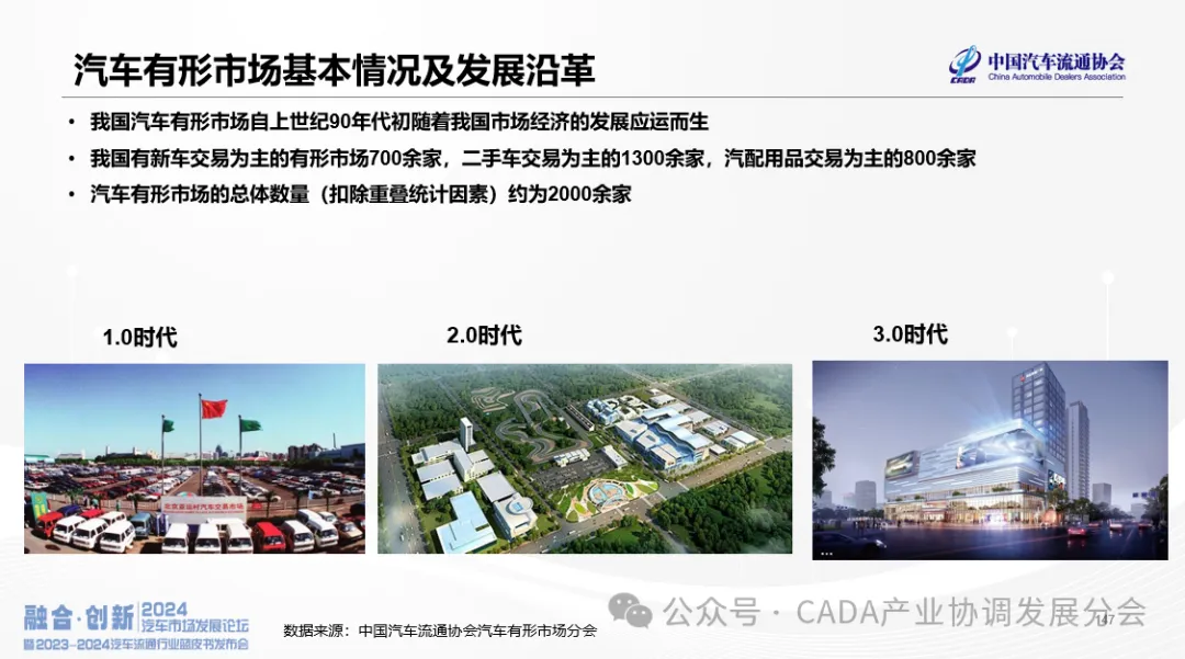 报告指出,我国汽车有形市场自上世纪90年代初,随着市场经济的蓬勃发展而逐步崛起。目前,专注于新车交易的有形市场数量已达700余家,专注于二手车交易的市场约有1300余家,而专注于汽配用品交易的市场则超过800家。在扣除重叠统计因素后,汽车有形市场的总体数量大约为2000余家。