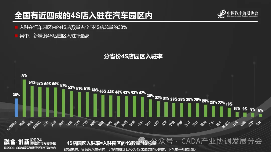 全国范围内,有近四成的4S店选择在汽车园区内安家落户。而在这些园区中,新疆的4S店入驻率独占鳌头。