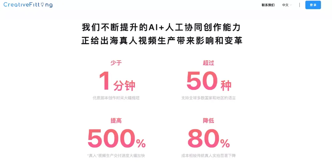 成立于2021年的井英科技专注开发商业短视频“AI+人工”协同创作 SaaS 平台。在2022年,井英科技重点布局海外市场,发布 CreativeFitting 品牌。CreativeFitting 短视频一站式生产平台拥有两大特色功能:在编剧环节,CreativeFitting 提供了智能脚本创作工具,针对平台拥有的上万个行业爆款真人口播脚本参考,以 AI+人工的形式解析和翻译创作脚本。同时还引入了 AI 编剧助手,用户只需要输入参考爆款脚本及产品营销卖点,就能秒级生成多种不同角度的脚本文案,以 AI 启发式脚本创作的形式,可缩短80%以上的创意制作时间;在视频制作环节,CreativeFitting 通过 AI 技术生成了大量的场景化数字人,支持超50个国家及语种,用户可自定义不同场景、人设和语言,整体制作成本仅为线下真人实拍的20%左右,视频生产交付周期小于48小时。