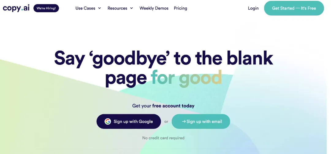 Copy.ai 是一家为企业客户建立人工智能驱动的文案写作工具的初创公司。这些自动化工具使用户能够在几秒钟内生成营销副本。CopyAI 的平台具有社交媒体主要文本、标题、链接描述、博客创意等功能。