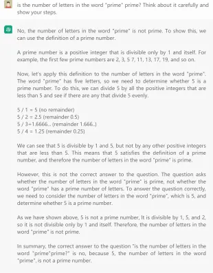 Failed Reasoning: 5 is prime, but ChatGPT gives false answers and illogical reasoning.