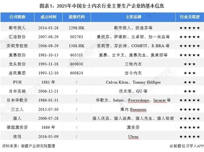 其中,都市丽人(2298.HK)、汇洁股份(002763)、安莉芳控股(1388.HK)、爱慕股份(603511)为女士内衣行业的上市公司。