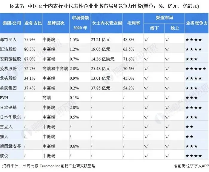 4、中国女士内衣行业企业布局及竞争力评价