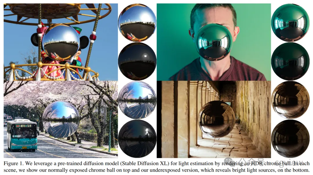 在给定输入图像,该方法把场景的照明估计预测为 HDR 环境贴图。想法是使用扩散模型将金属球渲染到图像中,预测正确的光照。这不是传统办法意义上的假反射,而是在庞大的数据集上训练,并遵从图形学第一定律——如果它看起来是对的,那一切就是对的。由此可见完全基于扩散模型的渲染器架构是很有前景的,甚至达到和传统进行混合的架构渲染。追求绝对精度和视觉正确平衡不断妥协的新办法。