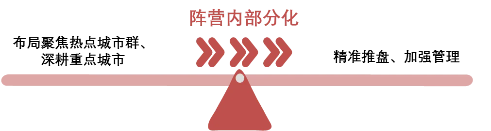 百强阵营内部企业分化持续。布局聚焦热点城市群或深耕重点城市、精准把握市场节奏推盘、加强数字化管理、完善机制建设,提升企业运营效率,助推企业业绩增长。