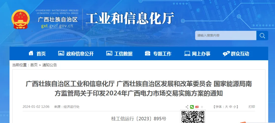 广西壮族自治区工业和信息化厅 广西壮族自治区发展和改革委员会 国家能源局南方监管局关于印发2024年广西电力市场交易实施方案的通知