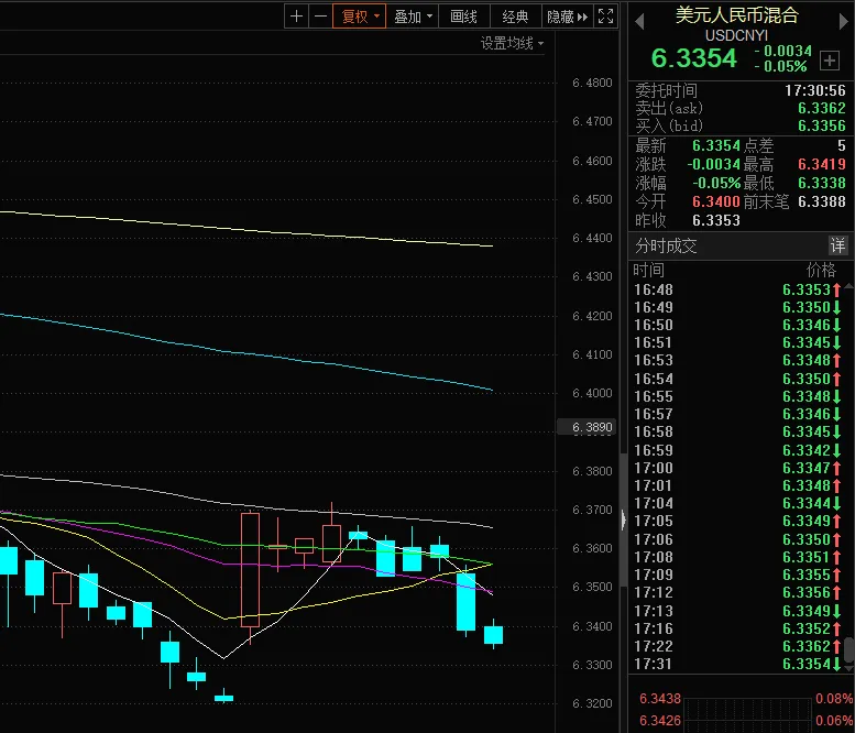 这两个增速都低于预期,这是好事情。一方面说明通胀得到了一定的控制,消费价格向下游的传导已经完成;另一方面原材料价格的增速下滑,说明大宗商品的价格得到了有效控制,前面降准、降息的效果被进一步强化。而PPI和CPI剪刀差的缩小,说明制造业企业的利润空间在放大,制造业景气度开始逐步提升,对激活整个制造链条尤其重要。所以,当前这些数据的向好,有利于企业释放利润,对支撑股价有重要作用;有利于“灵活宽松”货币政策的进一步发力,给了流动性更多的想象空间。第二,人民币进入升值区间。这个对外资的信号是比较明确的。