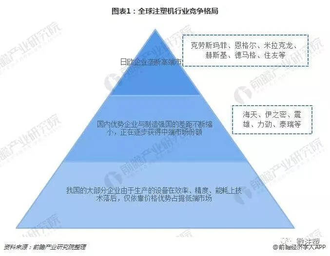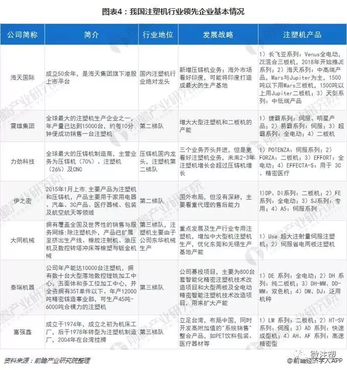 目前,我国注塑机行业已经形成长三角和珠三角两个产业群,其中长三角地区的宁波地区以海天为龙头,注塑机发展迅猛,年产量占国内注塑机年总产量50%以上,占世界注塑机的三分之一。具体来看,宁波的海天国际在国内不管是产量还是产值上都占据绝对的领先地位,分别占比35%和43%,属于第一梯队,震雄、伊之密、博创、泰瑞和力劲等处于第二梯队。在行业龙头确定的情况下,对于二三四位的"排位赛"之争将是未来几年注塑机厂商的主线。