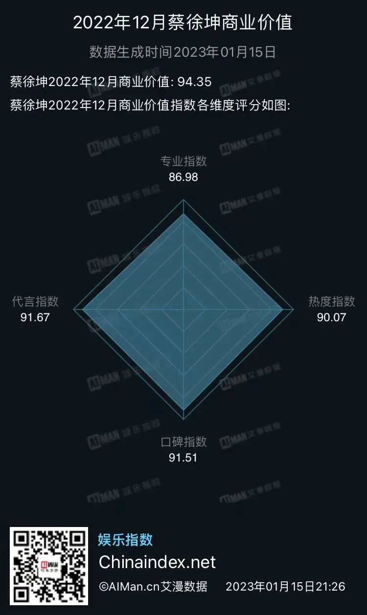 因此,蔡徐坤12月的商业价值表现也相当不错。