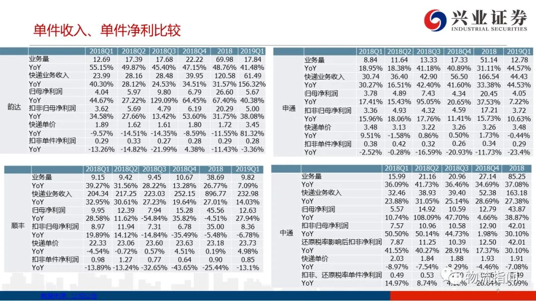 快递行业2018及2019Q1财报总结