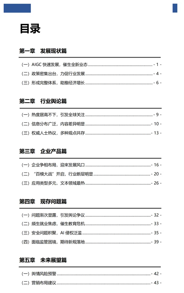 本报告从AIGC行业整体发展现状与舆论环境、热门企业竞争布局、热门产品优势特点等方面进行分析,找寻相关热点、亮点与难点,并提出相应的舆情风险预警与营销布局建议,以期为AIGC相关主体发展提供参考。