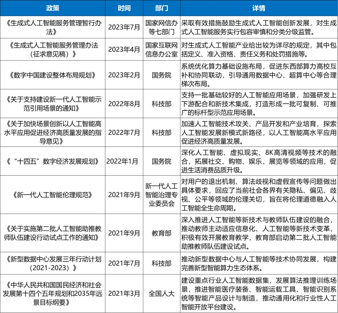 表:2021年-2023年国家层面“人工智能”领域部分重要政策