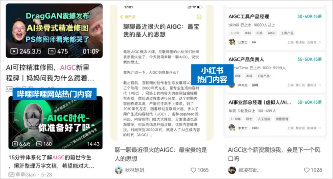 图:哔哩哔哩、小红书平台AIGC相关热门内容