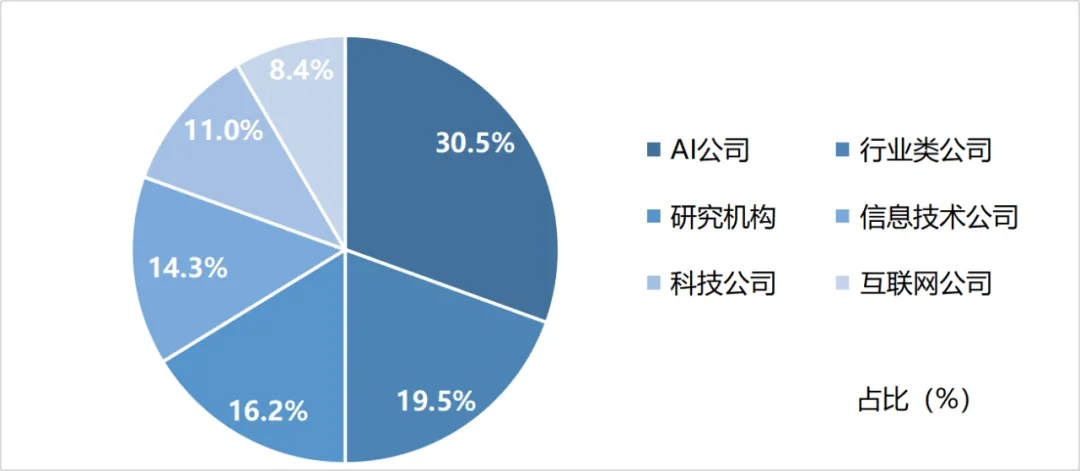图:2023年热门AIGC企业及研究机构类型分布情况