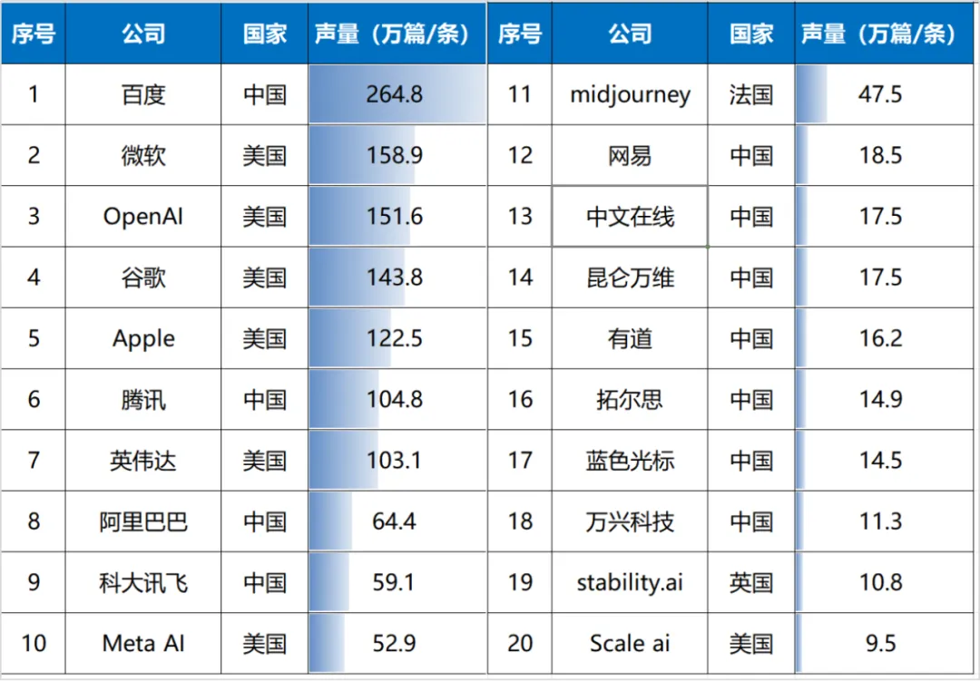 表:AIGC相关公司声量TOP20