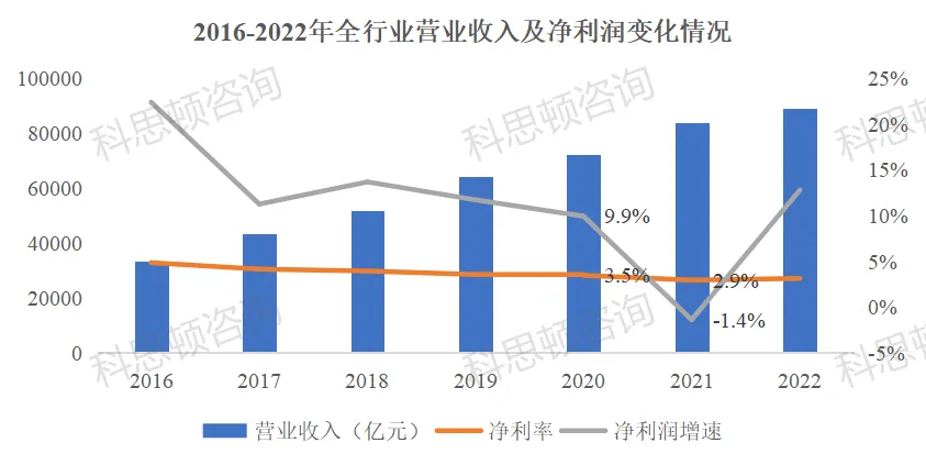 近日,住房城乡建设部官网发布《2022年全国工程勘察设计统计公报》,2022年,全国共有约2.8万家工程勘察设计企业参与了统计,全国具有勘察设计资质的企业营业收入总计8.9万亿元,同比增长6.1%,增速较上年下降9.8个百分点,净利润2794.3亿元,同比增加12.8%。其中:
