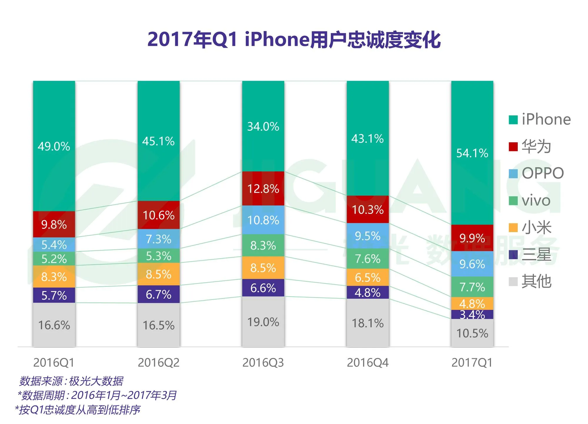 iPhone称霸一二线城市,用户忠诚度高达54.1%