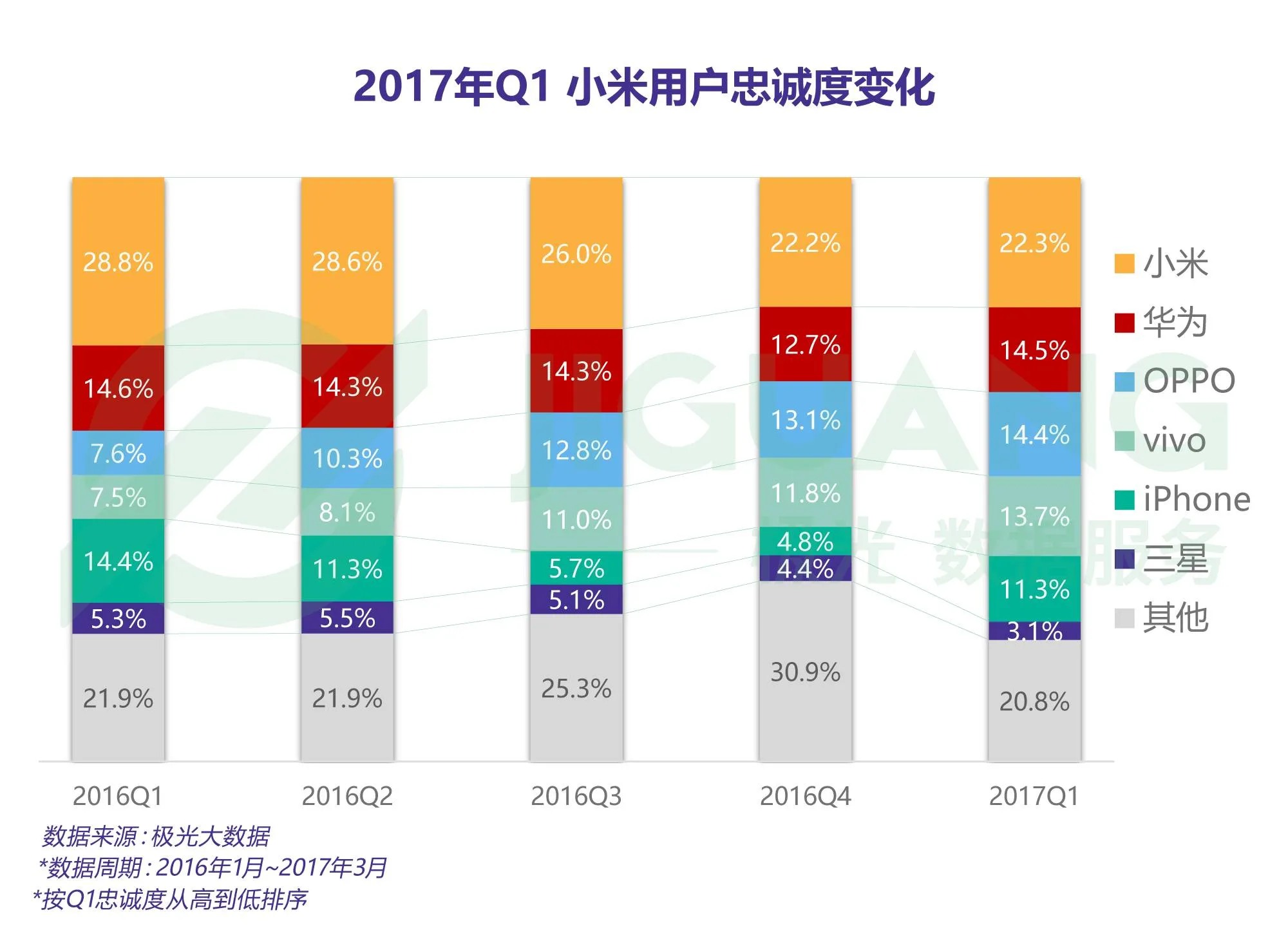小米用户忠诚度水平与Q4保持一致,仅两成“回头客”