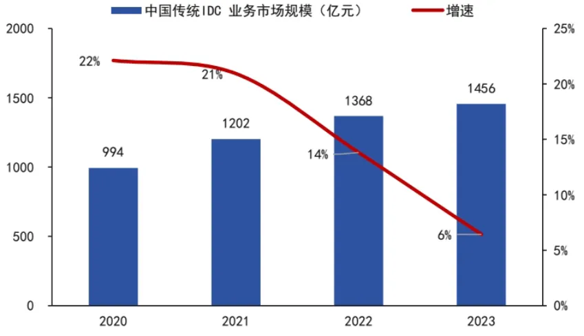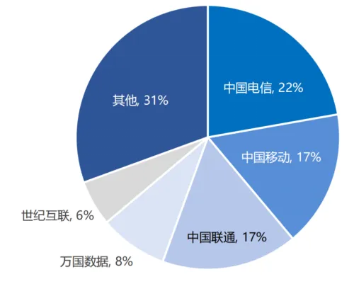 三大电信运营商占数据中心服务市场主导地位。三大运营商占据中国数据中心服务商市场的主导地位,2023年合计市场份额约56%。