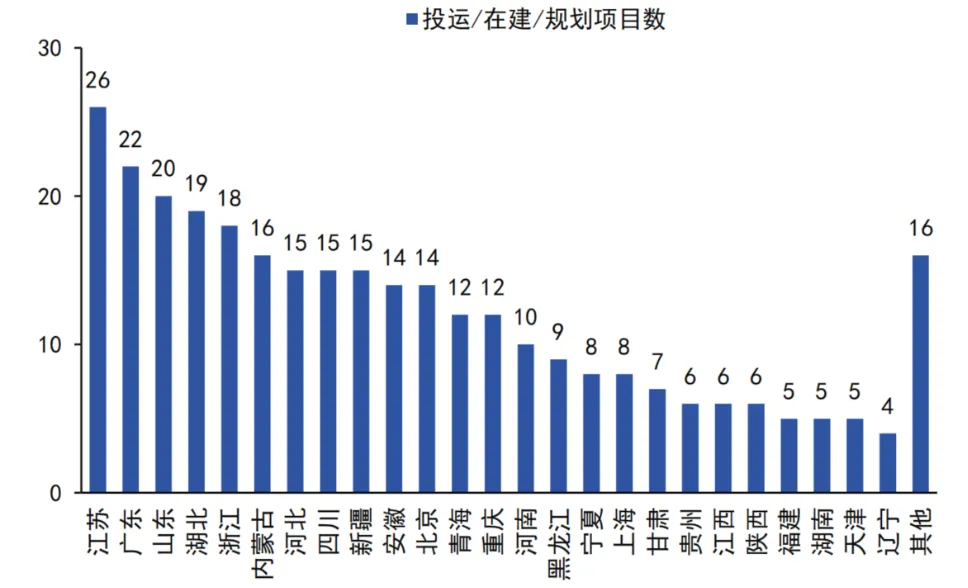截至2024年8月我国各省份投运/在建/规划AIDC项目数