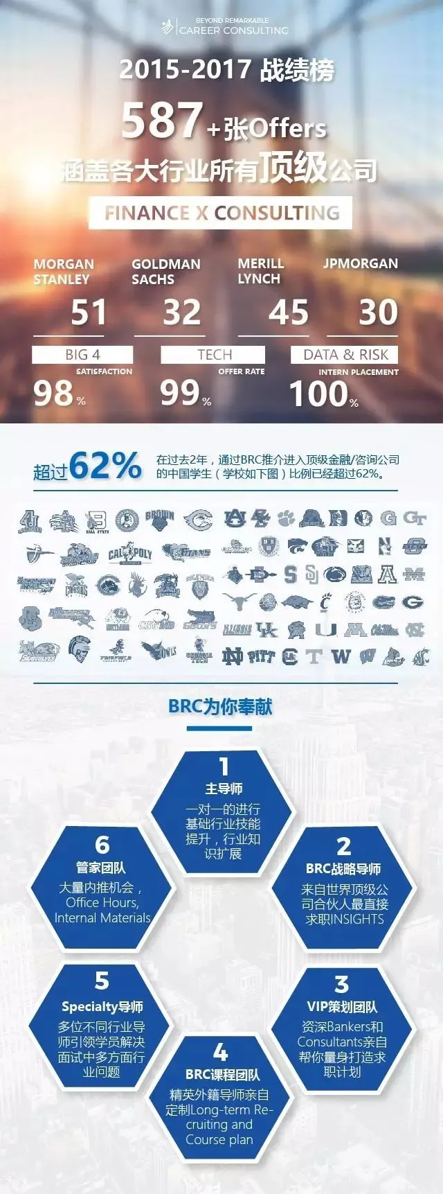 BRC求职目前已经拥有了一只包括1000+来自顶级投行,咨询,四大会计师事务所,快消,时尚行业的精英导师团队。我们的导师人脉网络遍布美国,加拿大,澳大利亚,伦敦,新加坡,香港,上海和北京等地,并正在不断壮大和拓展中。