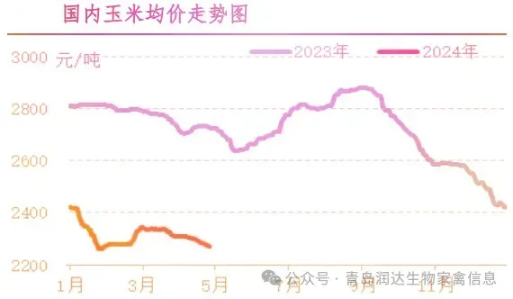 本月豆粕现货价格下跌,供应端看原料大豆陆续到港,缓解了前期的原料紧张,供应端转向偏宽松。需求端看下游延续随采随用为主的策略,市场需求增量相对有限。预计5月豆粕价格下跌。 本月全国玉米月度均价为2291.17元/吨,较上月均价下跌38.95元/吨,跌幅1.67%。