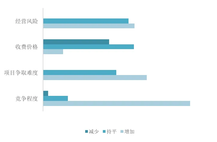 勘察设计行业中62%受访企业认为当前市场竞争环境更加激烈,没有企业认为竞争环境得到缓解。
