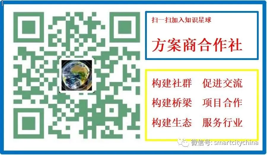 聚焦智慧城市领域,以方案商为主线,服务于方案商、工程商、集成商、咨询设计商,由本期开始推出方案商合作社的知识星球(社群),欢迎扫一扫本文底部的二维码加入。
