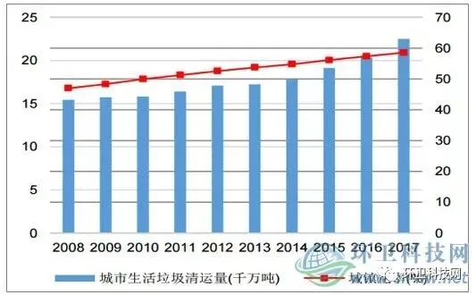 城镇化水平快速提升,带动环卫装备需求提升。一方面,人民生活水平的提高造成生活垃圾产生量大幅增加,清运需求随之上升。2008年,我国城市垃圾清运量为1.54亿吨,2017年预计达到2.25亿吨,年均增长4.28%。目前,全国常住人口城镇化率接近60%,根据《国家人口发展规划(2016-2030年)》,2020年达到60%,2030年达到70%。实际来看,城镇化进程要快于规划目标,因此未来几年,我国垃圾清运量将保持增加的趋势。