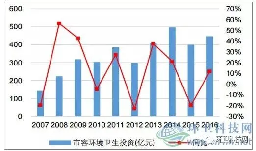 随着人民生活水平的提高,公众环保意识不断增强,政府越发重视城市环境卫生基础设施建设。2015、2016年,全国水利、环境和公共设施新增固定资产投资超过4万亿元,市容环境卫生固定资产投资完成额在400亿元左右,总体增长势头仍未转向,预计将一直保持在高水平。水利、环境和公共设施新增投资以及市容环境卫生投资金额逐年增加,将刺激环卫装备的市场需求,促进环卫机械装备行业的快速发展。