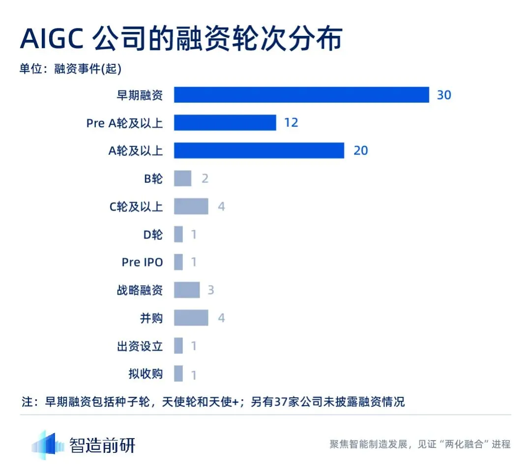 AIGC 行业目前正处于一个关键节点。ChatGPT 所引领的 AIGC 新时代,正在重新定义人们的生产生活。这场全球化的变革,应该如何把握?中国企业又有什么样的新机遇和挑战?智造前研整理了 116 家 AIGC 公司资料,梳理出了目前该赛道公司地域分布、融资状况、以及关注 AIGC 的投资机构等多个维度的数据,全方位的把该赛道展示出来。
