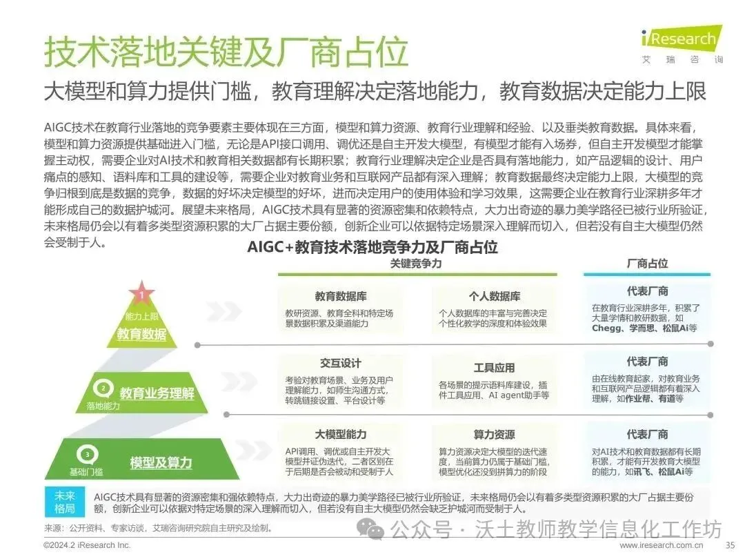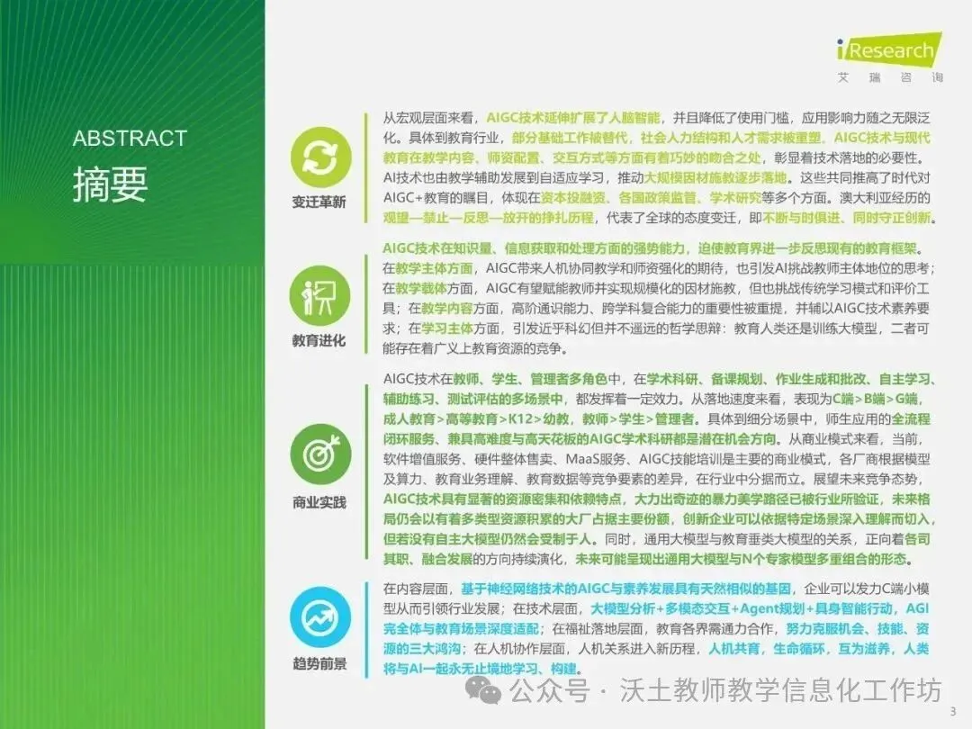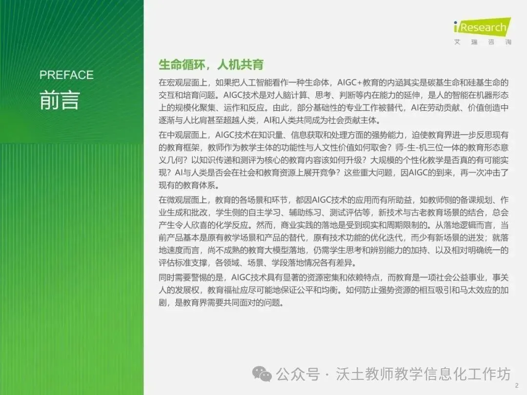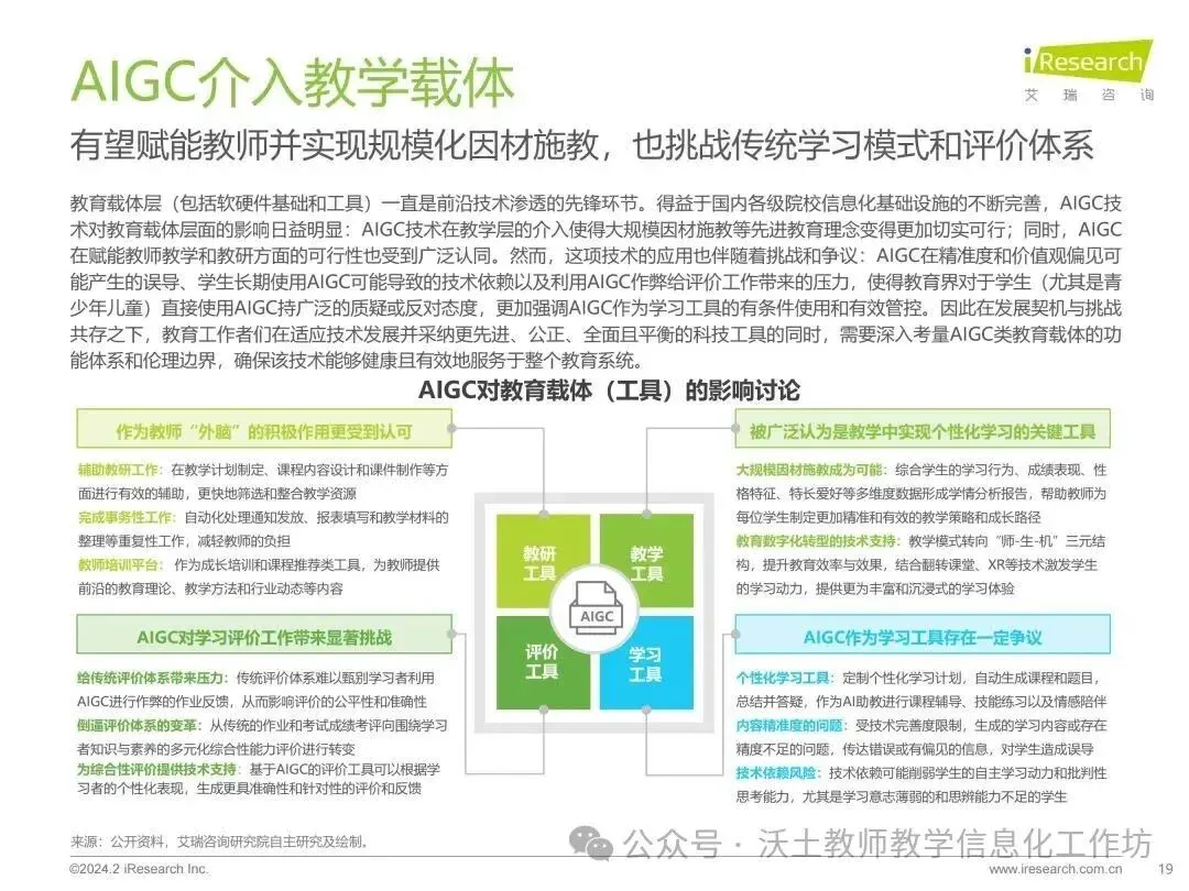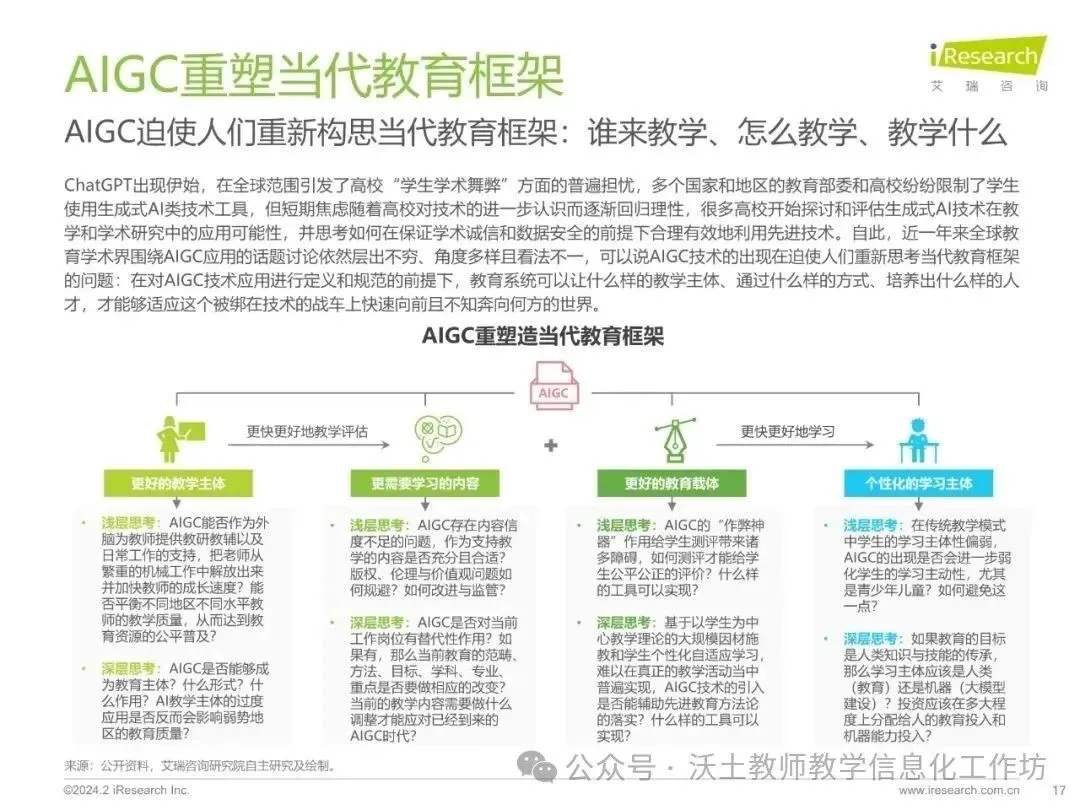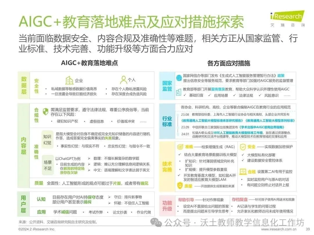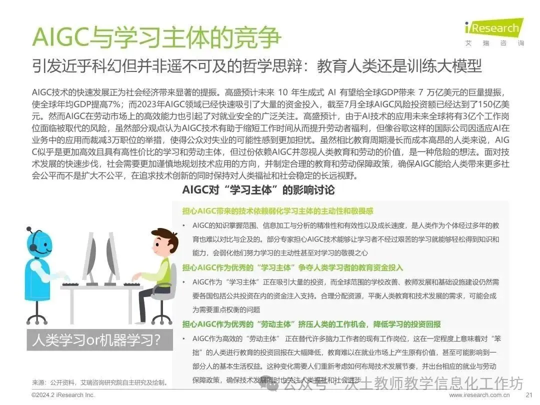 同时,报告强调了AIGC技术在教育中的应用需要警惕资源密集和依赖特点,以及如何防止资源的不均衡分配,确保教育公平和均衡。