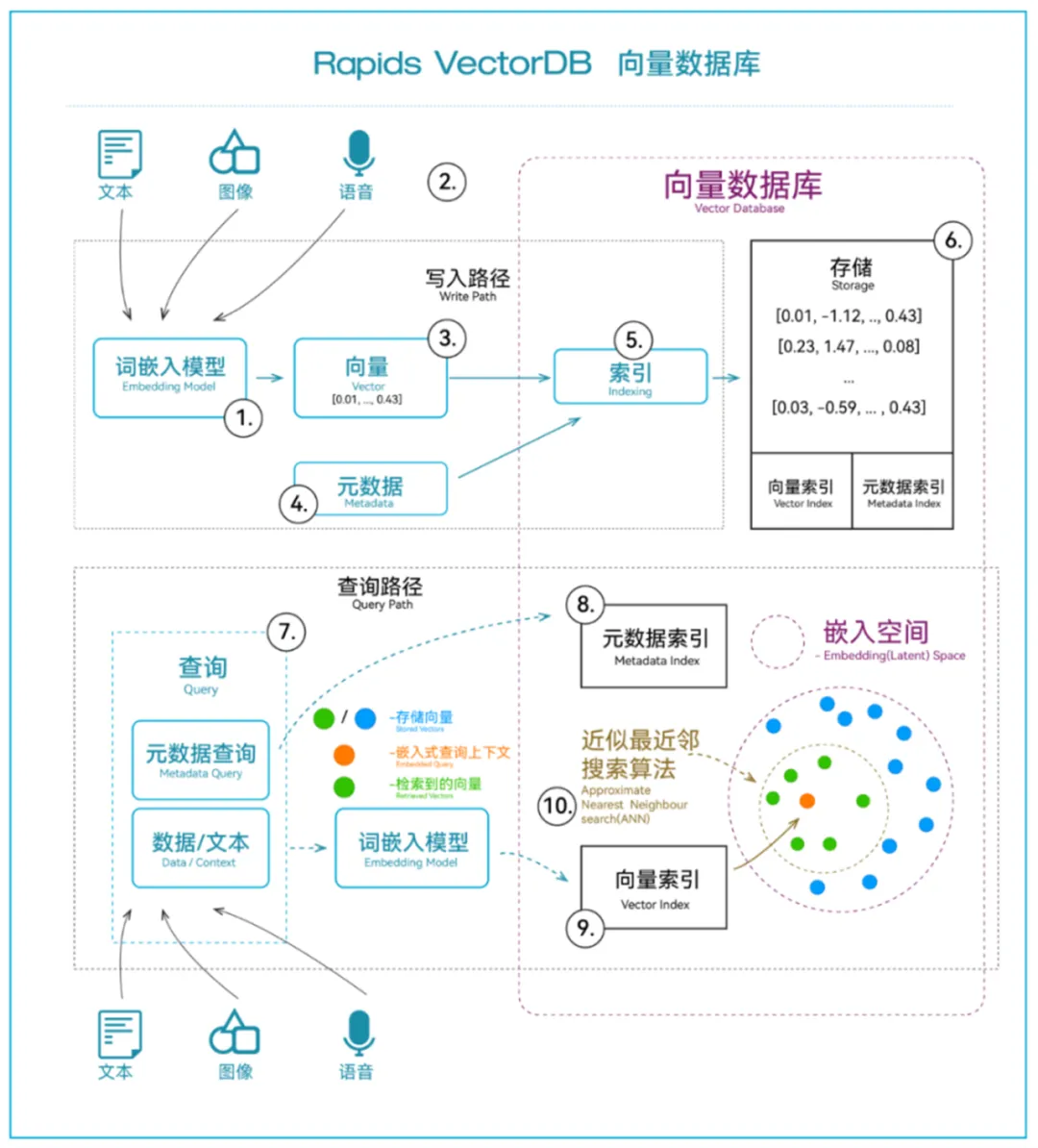 在向量数据库方面,柏睿数据打造的Rapids VectorDB是一款高性能、轻量化、可扩展的向量数据库,基于全内存分布式架构,支持对向量数据的高效存储、检索、分析。它具有高性能、可扩展、高集成等特点优势:可基于HNSW向量相似度算法的快速查询;支持分布式扩展,可存储十亿级数据;支持Python, Java和Javascript API;内置多种词嵌入模型,同时支持自定义模型来进行向量嵌入;支持与LangChain框架集成,快速构建内存级LLM应用等。